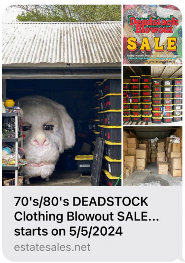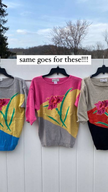 Welcome to our Deadstock blowout sale! Visit our esatesales.net listing here: https://www.EstateSales.NET/NJ/High-Bridge/08829/4056762 <3 WHAT TO EXPECT: -bins and bins of women's (mostly acrylic) knit tops from the 70s + a few 80s (some cute, some not so cute) from Helen Sue, Miss Scotch English, Wye...