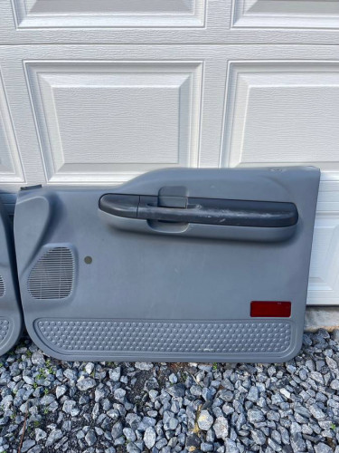 Set of door panels from a 2004 F250 Light gray , no cracks they do have normal fade on top sections for sun . Armrests are good , all morning clips are good . This is set driver & passenger for manual crank windows . 99-04 models might fit 05-07 also depends on handle location Pick up SE Corner of Char...