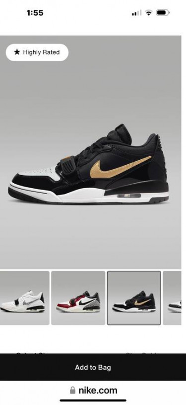 Brand new Nike Air Jordans in the box, black and white and gold, low tops, size 11.5.