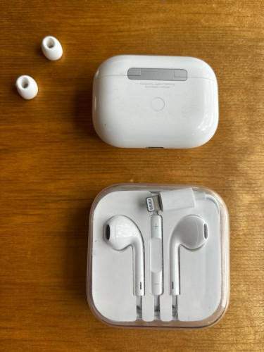 Airpods pro gen 1 Cleaned and disinfected. Small and medium size ear tips. With 2 charge cables and wired earbuds. All original apple, not copies.