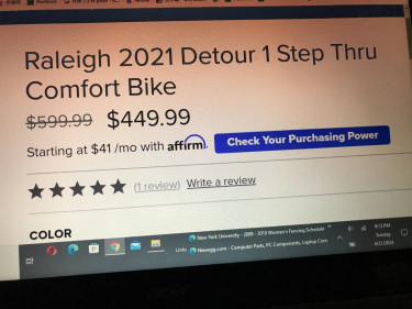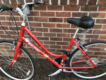 RALEIGH " DE TOUR" STEP UP BIKE SHINING, LIKE NEW ALUMINUM FRAME, ALUMINUM WHEELS THE PRINTING OF THE ALUMINUM ON THE BIKE IS TOO SMALL TO SHOW ON PICTURES SEE PICTURE. 3, PIC.4 ! BUT IF YOU COME HERE TO TEST RIDE IT, YOU WILL SEE THE PRINTING ON THE BI...