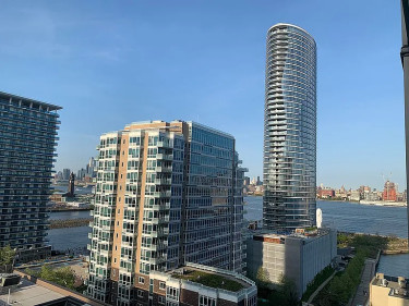 Amazing floor plan, 1 bed, 1 bath 840 sqft plus balcony in luxurious full amenities building including 24HR Doorman, fitness center, pool, Jacuzzi, steam room, sauna, terrace, playroom and more. Apartment features; NYC and river view, full size kitchen with granite counter top and stainless steel appliances, ...