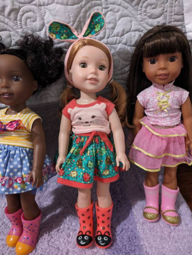 For sale are the pictured American Girl Doll Wellie Wishers in excellent condition. $30 each or all three for $80. Will include additional pictures outfits also if all three are purchased. These were primarily on display so they are in excellent condition. They sell new for $65 each.