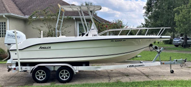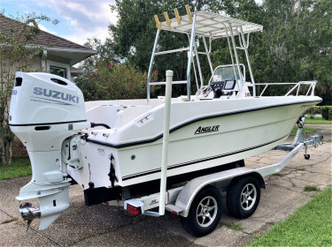 2001 Angler 2100 Center Console, 2023 Suzuki DF150A 4 Stroke Motor, 2019 EZ Loader Aluminum Trailer $24,900.00 * 2001 Angler 2100 21'6" ALL COMPOSITE Hull - NO WOOD - strong hand laminated hull ~ Smooth dry ride with a high freeboard - self bailing ~ Custom welded aluminum T Top ~ Dual dive platforms...