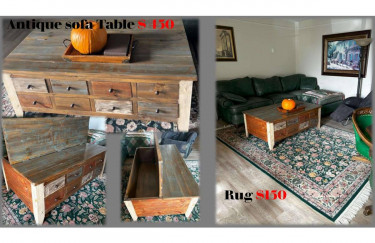 Antique sofa table available for sale Vintage charm adds character to any room Features cabinet space for storage Crafted from quality wood Perfect addition to your home décor Timeless design suitable for various interior styles Excellent condition, ready for immediate use