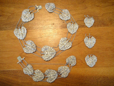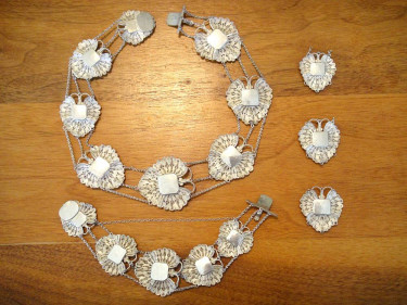 Up for sale are a gorgeous antique Victorian ladies sterling silver filigree butterfly necklace and matching bracelet, plus a few extra links for each one, all being sold at scrap value. All pieces are unmarked, but were XRF tested as .925 sterling silver and weigh a total of 256.1 grams. The necklace feature...