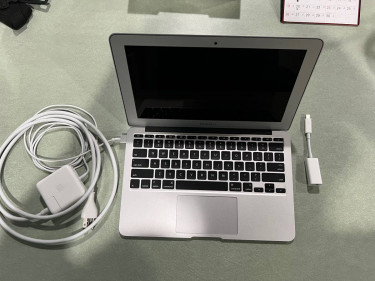 One owner Apple MacBook Air 11.6 inch 2015 Model - Model A1465 1.6GHz Dual Core Intel Core i5 4GB Ram - 128GB SSD Harddrive Intel HD Graphics 6000 11.6 inch (1366×768) Built-in Display FaceTime HD Camera WIFI - Apple Bluetooth 45W A/C Adapter Thunderbolt Ethernet Adapter
