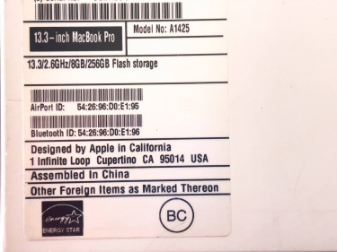 Up for sale is an Apple MacBook Pro 13" - Early 2013 - 2.6GHz/8GB/256GB SSD, loaded with Yosemite, in original packaging. Battery is still in great condition.