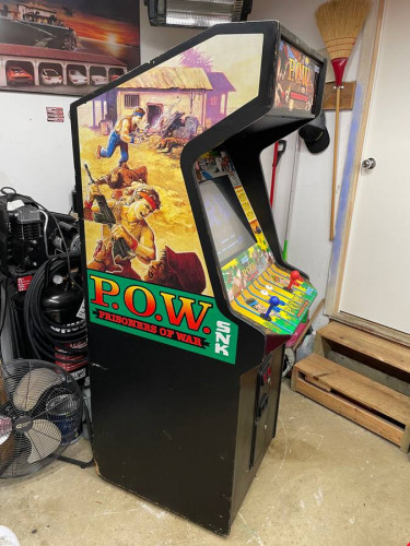 Clean 1988 dedicated SNK POW arcade machine. Features a bright 19” color arcade monitor (not some LED swapped thing), 3 button controls for two players and a JAMMA wiring harness, perfect for a game room or basement. New bulbs in marquee, lights in coin door and wiped the monitor down, it’s ready for a new ho...