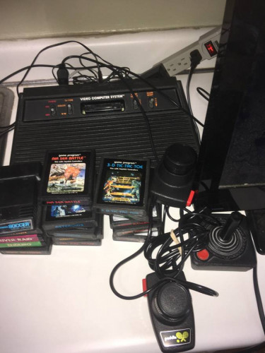 atari 2600 nicknamed vader (all black) console (bundle #2) tested and working comes with joystick, tennis paddles ac adapter, and rf cable to hook up 15 games(games will need some cleaning) console in great shape. item will be for pick up only(will take a small video to show item works) as meeting s...