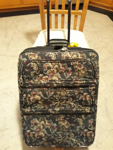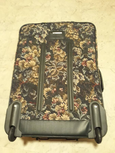 26" Atlantic Tapestry Suitcase with wheels. On the front side of the case there are two zipper compartments. One on top measures 16" x 7" and on the bottom 17" x 16". When you open the suitcase in the bottom part you will see 3 zippered pockets, one on the bottom and one on each side. The surprise is in t...