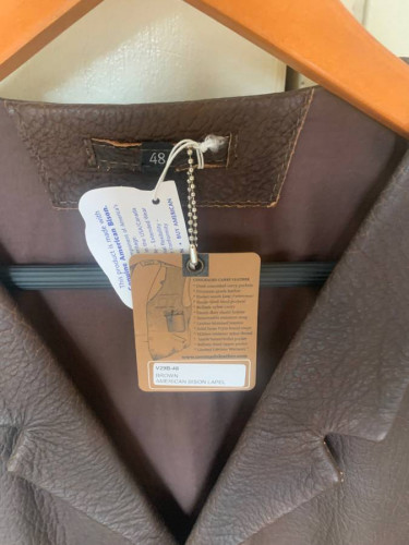 Brand new brown Coronado bison leather vest! Top quality soft leather with buffalo nickel snaps and concealed carry pocket. American made. Sells for $349 - Price is firm Would make a really special gift!