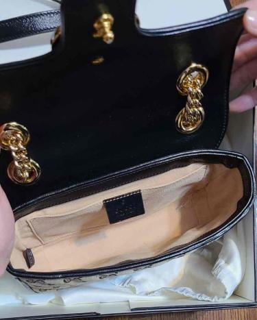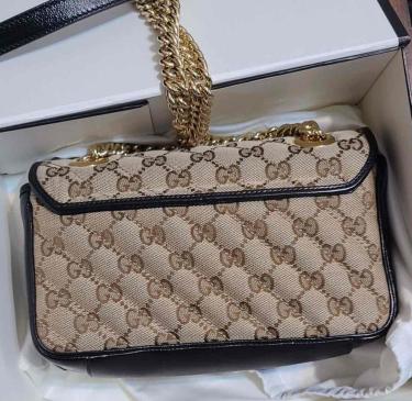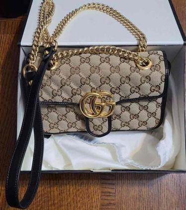 Bought for $1,300 just a few days ago. Like new, barely used. Authentic Gucci GG Marmont with diagonal quilted leather, gold tone hardware, and adjustable chain strap. Beautiful brown/black combo small size.