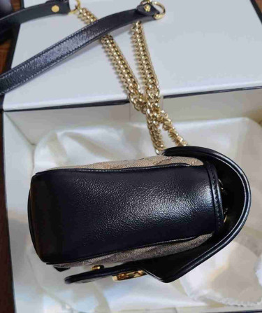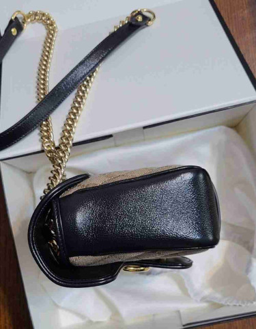 Bought for $1500 a few weeks ago. Like new, barely used. Authentic gucci GG Marmont Diagonal Quilted leather, gold tone hardware and adjustable chain stop. Beautiful Brown/Black Combo Small Size.
