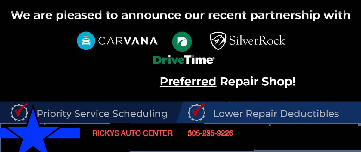 WE ARE AN IN NETWORK AUTO REPAIR FACILITY FOR CARVANA, DRIVETIME WITH THE SILVERROCK WARRANTY...NO CHARGE TO YOU WITH THE WARRANTY...CALL US NOW @ 305-235-9226