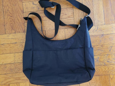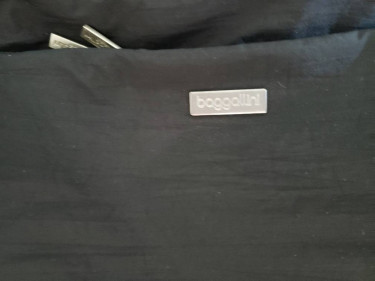 Baggallini Brand travel bag, pocketbook. Great for travel, lots of pockets for storage, compartments with zippers to secure belongings. Organize tote Made of durable sturdy fabric. Extra long strap to allow multiple ways to carry bag. Color black, tan interior, silver color zippers and hardware. Ex...