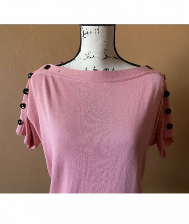 Very clean Authentic Balenciaga Paris Light Knit Pink Salmon Boat Tail Top or light Sweater. Size 38 similar to US small or medium but please refer to measurements below for fit. Made In France. Measures laying flat armpit to armpit 20” for bust of up to 40” but it supposed go be loose, length of 20”, also pe...