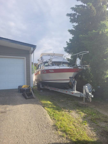 86 Bayliner Contessa. Low hrs rebuilt 5.7 gm and volvo penta duoprop leg. 2017 Tuff aluminum tandem trailer and 9.9 yamaha with electric start and power trim. All new marine grade upoulstry in salon. Sleeps 6. C/w nav,safety and electric downrigger,pot puller traps lines bouys. Moved from the island to the ok...