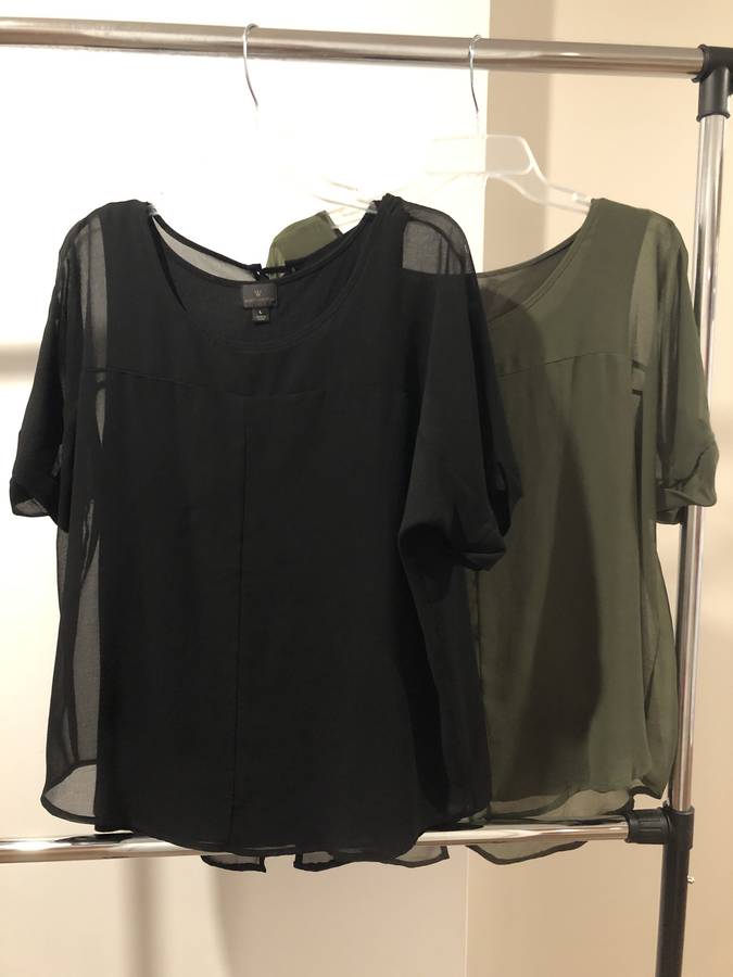 Both shirts have an extremely stretchy and soft (think LuLaRoe leggings material) tank top with an attached over layer that is sheer and laced together in the back at the top and open at the bottom to allow for more movement. Both look amazing with jeans and other neutral colors and of course prints. You ...