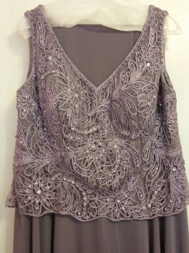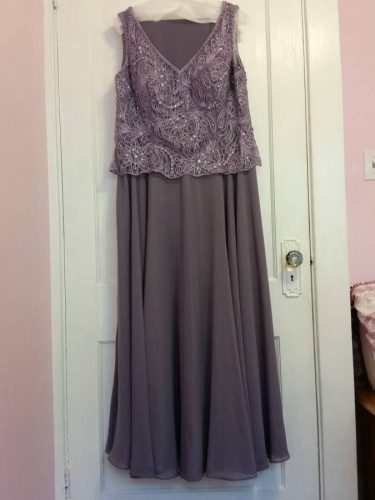 For Sale: A Beautiful Lilac Heather Woman's Gown, with matching wrap... a very flattering design! In perfect condition, only worn once for a few hours. It was originally a size 18 and was professionally altered to fit the following measurements: 56" shoulder to floor, 42" bust, 38" waist, 43" hips Th...