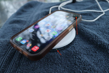This is a 7.5 watt wireless charger that works for iPhones 8 on up; drop your phone on the charger and go! You'll know your wireless charger is engaged when: 1. You'll hear a tone on your iPhone 2. You will see a green light on the side of the chrome base, and as indicated by the red arrows, you'll see the ba...