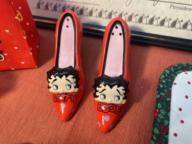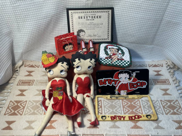 Highly Collectable Betty Boop items include: 1 Soft Betty Boop Doll Retired, "Pineapple" measures 18" 1 Soft Betty Boop Doll Red Dress with Garter measures 18" These are the original San Francisco King Features Syndicate issues from 1983 1 Set of Porcelain Salt & Pepper High Heel Shoes, measurin...