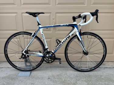 Excellent condition. 57cm full carbon monocoque frame and fork. 2x10 Shimano 105 group including shifters, derailleurs, cassette. FSA crankset and brakes, Reparto Corse wheelset, Maxxis 25mm tires, Selle Italia SLR saddle, new Bontrager bar tape. Look Keo pedals included. Beautiful bike!