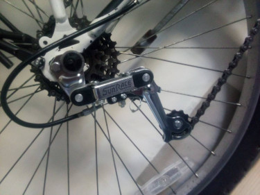 The front derailer is not installed, but the derailer, including a new shifter and cable are there, if you want to; I was not using them, but will include them. The wheels have flat protectors in them (so you can literally ride through broken glass): the tires are full rubber schwinn, like car tire rubber ...