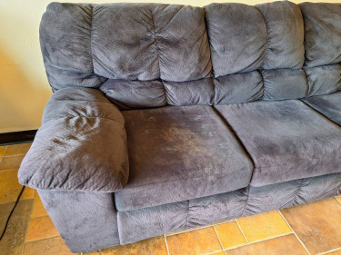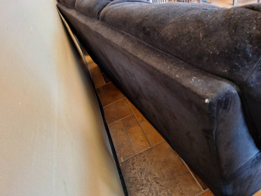 Price is firm. Will only hold if paid in full or someone is on the way. Delivery possible, depending on location, for a fee after being paid in full. Located in Saint Peters close to Mid Rivers Mall. Black fabric sofa. Manufacturer unknown. Overall measurements are 88" x 38"d x 36" from the floor to the top o...