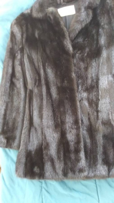 Stunning and hardly worn female mink stroller jacket. Jacket has beautiful lining, nice wide pelts and collar, princess seams, and 2 pockets. Jacket closes with hooks. Monogram of PGF. The pictures look too light. This is a beautiful deep black mink jacket. Includes: 1 mink jacket 1 breathable hang...