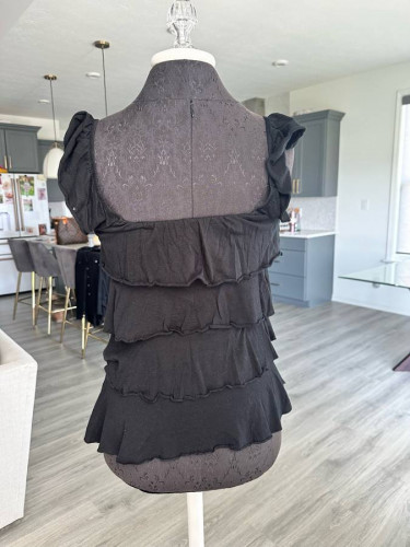Brand: Express Size: small Black ruffle tank with cap sleeves. Layered ruffle detail.