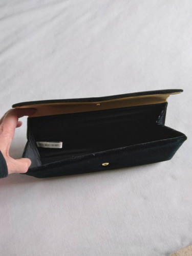 Victoria's Secret Beautiful... Black Velvet with Gold Heart Snap Enclosure. Gold Satin on top inside flap.