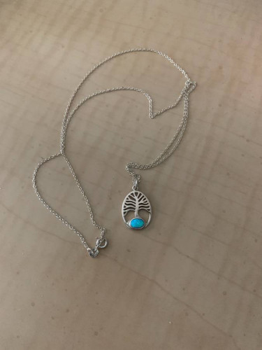 Worn twice. Blue opal & sterling silver necklace 22”.