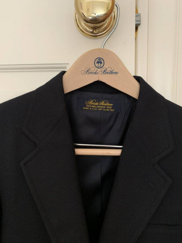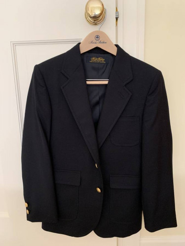 FOR SALE: A Brooks Brothers BOYS navy WOOL blazer. I am not sure of the size - I do not see it identified anywhere on the suit - but I purchased a Brooks Brothers white dress shirt at the same time and the shirt is size 12, so maybe the blazer is also size 12(??). Length from top of shoulder to bottom of b...