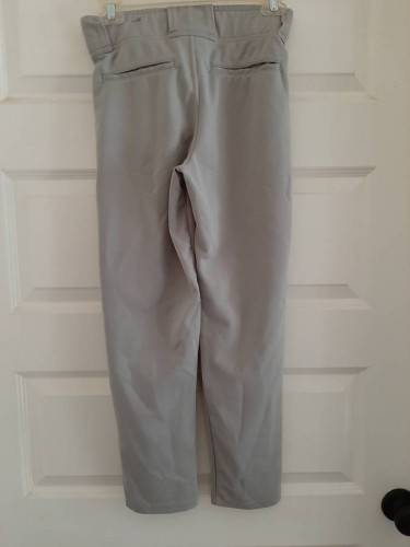 Adidas sports pants. Straight leg. Previously worn for one baseball season. Part of the teams uniform. No size stated on tag. Would probably fit a 9 to 12 year old. Measurements: Length - 34 1/2" from top of 2" waist band to bottom of leg hem. Waist - 27" Waist band has loops for a belt...