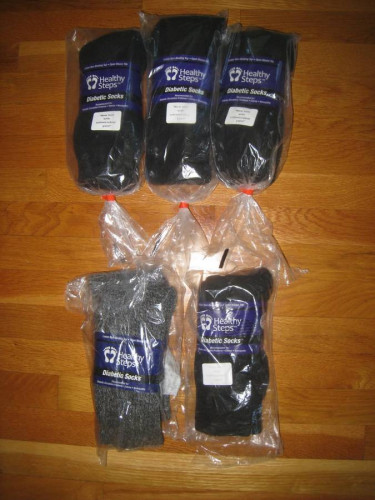 Brand new in factory sealed plastic bags: Healthy Steps Diabetic Socks: Black Crew Socks XL - 3 Bags Available with 3 Pairs in Each Bag Pairs in Each Bag - $10 ~~~~~~ 1 Bag Available with 2 Pairs in Bag - $7 ~~ Knit with anti-microbacterial yarn ~~ Loose non-binding top ~~ Open weave rib ~~ Seamless...