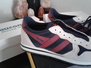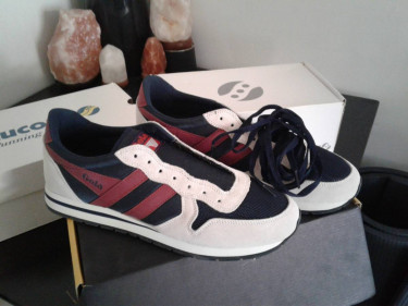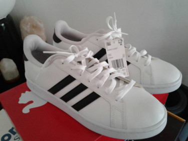 All of these are size 12. They're all brand new, never worn except for the tan, Puma Wild Riders which were worn twice for about 20 minutes each time. All pairs have boxes and laces. I buy too many shoes. Smoke free home. Gola = 20$ Adidas Grand Court (white & black) = 20$ Puma Dark Mode (hi...