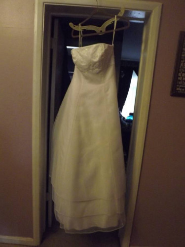 75.00 BRAND NEW, NEVER OUT OF BAG TILL NOW FOR PICS. PAID PRICE ON TAGS 499.00 WEDDING DIDNT HAPPEN, SOOOO... GORGEOUS, SIZE 12 PRESTINE WHITE WITH BAG, I HAVE BRA & SLIP, AND VEIL, AND ALL OTHER ACCESSORIES FOR IT SEPARATE PURCHASE HAS BEEN IN STORAGE. VERY PRETTY AND NOT GAUDY PLEASE EMAIL PHONE ...