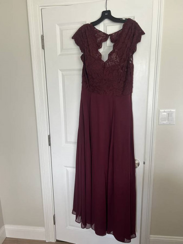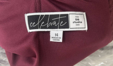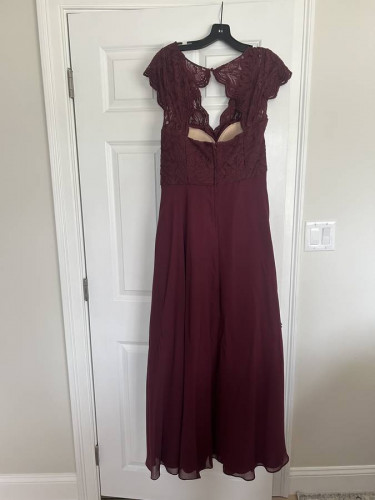 This “Celebrate D8 studio” dress was purchased from David’s Bridal for over $200 and was worn only one time. It is in excellent condition and has been dry cleaned and has been stored in a plastic garment bag. Color is burgundy - Size 14. The dress reached to the ground and was hemmed to fit someone 5’6” who ...