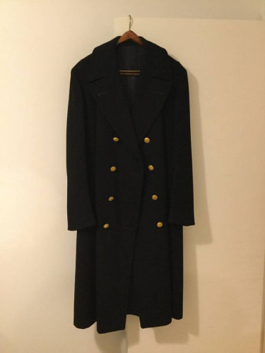Beautiful men's heavy wool bridge coat 3/4 length, in TOP CONDITION with no rips or tears. Originally purchased from an Army Navy store in upstate N.Y. around 1992. Thought to be from WW2. Lining is satin. All 10 buttons read on back "Superior Quality" and all faces are the same (eagle flanked with stars) wh...