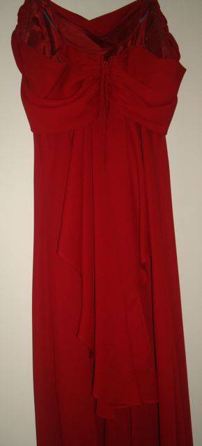 This is a gorgeous gown. It could be worn to any occasion where you want to make a dynamic statement! It is also the perfect color for holiday parties! The gown is burgundy, is a size 6 with spaghetti straps, flowing lines and a lovely drape in the back. It is very flattering and will look great at hol...