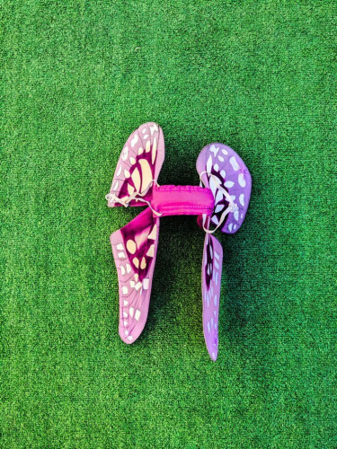 The wings are a gauzy polyester with painted accents.