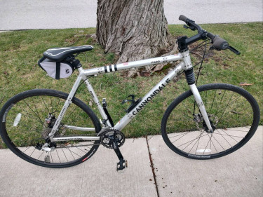 Made in USA 22” frame size 700 wheel size Front suspension 27 speed Disc brakes Ready to ride Asking $480