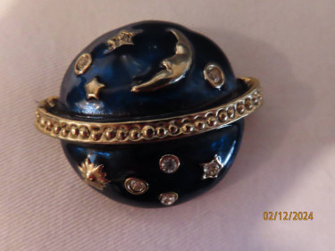 Celestial Blue Saturn Moon and Star Enamel Brooch 2 inches x 1.5 inches All crystals are there - just hard to show in photos