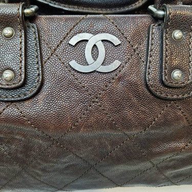 Indulge in timeless elegance with this exquisite Chanel Outdoor Ligne Doctor Bag. Crafted from luxurious diamond-stitched caviar leather, this iconic tote exudes sophistication and style. Sturdy reinforced leather top handles with silver links for durability and style. Frontal silver dots adorned with the...