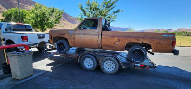 1979 chevy c10 long bed pickup. Bought it originally for my son as a project to rebuild for a first vehicle. Now that isn't happening. The truck runs and drives, needs work, great base for a project truck. Has a 350, 5 speed manual transmission, newer bench seat in cab. I have an extra set of wheels for t...