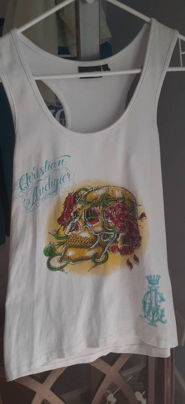 Christian Audigier Ed Hardy Rhinestone Skull Tank Top Clothes Large