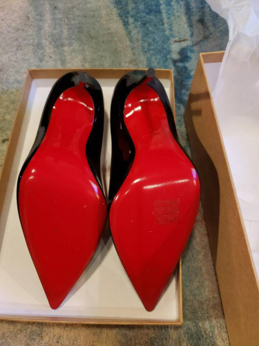 100 Authentic Women's Louboutin Kate 100 Black Patent Pumps/heels US 8.5 (39). Never worn outside. Sole has some indentions from walking on hard floor in my apartment. Includes the shoe bag and the extra heels that come in their own bag. The box is in excellent shape. Had toe surgery shortly after I purc...