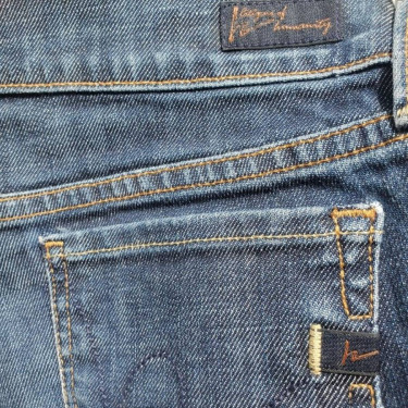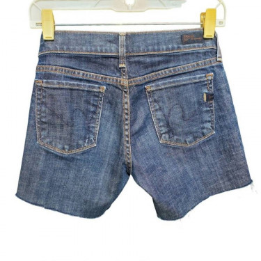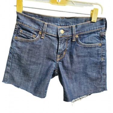 These dark blue shorts used to be capris but were cut into shorts. Material: 98% Cotton 2% Elastane Made in USA with imported Fabric Women's size 25 Measurements: Width (Hip-to-Hip): 14 in / 36 cm Length (Top to Bottom): 13 in / 33 cm Condition: Pre-Owned, Great! No stains.