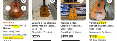 Excellent condition... new strings.. holds the tune for a long time. General - Finish colors: natural finish - Made in: Japan - Number of strings: 6 - Scale length: 26 inches Neck - Body fret: Neck joins body at 12th fret - Neck joint: set neck - Neck material: nato neck - Number of frets: ...